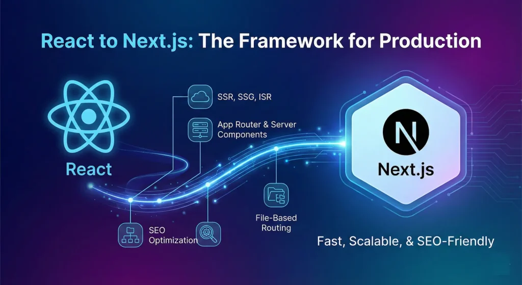 Enter Next.js. Often described as “The React Framework for Production,” Next.js provides the infrastructure and opinionated defaults needed to build fast, scalable, and SEO-friendly web applications.